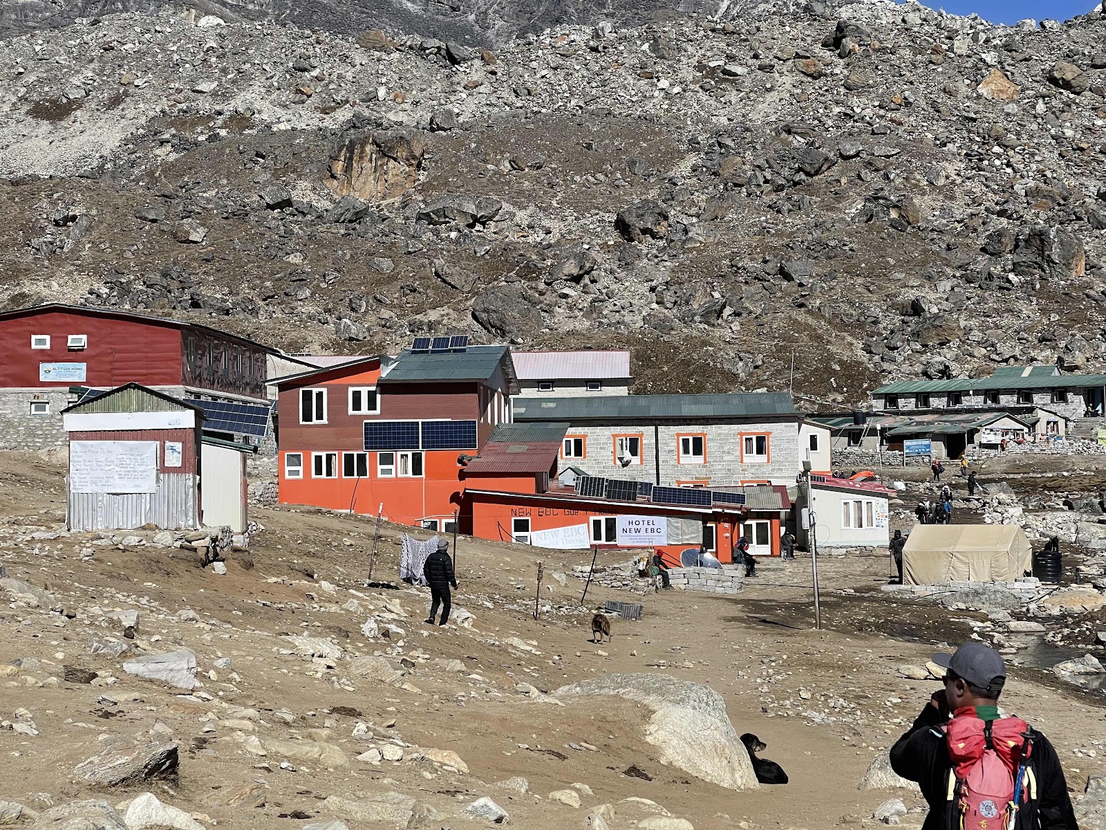 Auf dem normalen Weg gehen wir anschließend weiter das Tal rauf. Die Steigung ist sehr moderat. Noch vor dem Mittagessen kommen wir in Lobuche an. Nun kann ich mich wieder einmal entspannen und die Sonne genießen.